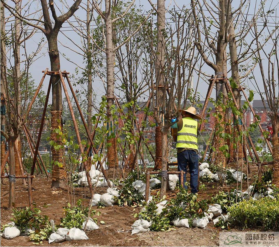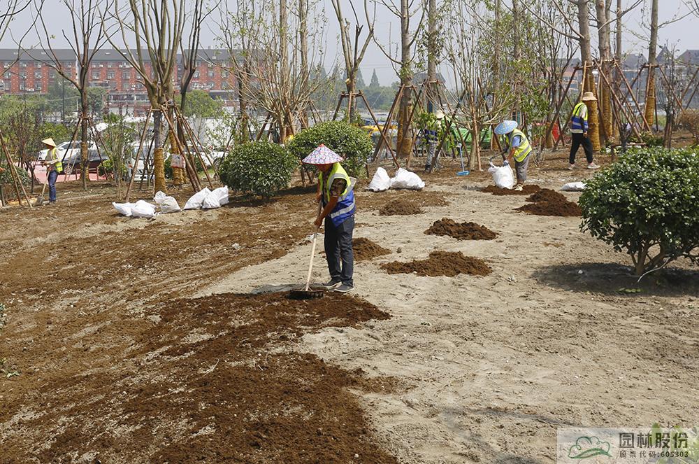 用園林股份自主研發的竹炭有機基質對土壤進行改良