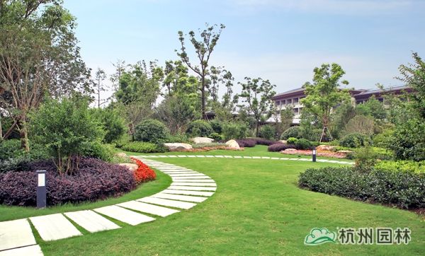 該工程位于江蘇吳江松陵鎮(zhèn)濱湖路三船河大橋附近,內(nèi)容包括綠化種植、硬質(zhì)鋪裝、園路施工、景觀小品工程、樁基工程、景觀照明系統(tǒng)等。在植物配置上,將中國園林的自然式手法與英國園林的自然式風格相結(jié)合,營造出亦古亦今、中西混搭,整體恢宏大氣、局部婉約精致的高端酒店景觀。該工程榮獲“2014年度中國優(yōu)秀園林綠化工程大金獎”。