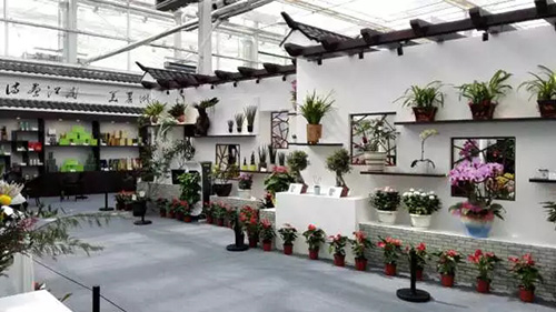 浙江展區緊扣花博會“花兒綻放新絲路”的主題,提取江南水鄉的典型建筑元素之一的“橋”,并融合杭州西湖十景之一的“三潭映月”進行展區外形設計,不僅體現了浙江優美的自然和獨特的人文環境,也象征著友誼之橋、溝通之橋、共贏之橋。
