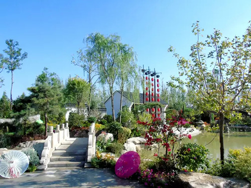 花博會開放時間是9月份,為配合開園需要,根據(jù)不同植物的開花特性及要求,采取相應(yīng)的措施,確保植物的最佳觀賞效果。桂花是杭州市市花,是集綠化、美化、香化于一體的優(yōu)良園林樹種,一般在仲秋時節(jié)綻放,“浙江園”的桂花全部精選自杭州畫境種業(yè)有限公司,提前運(yùn)送至銀川之后,利用當(dāng)?shù)氐牡蜏丨h(huán)境誘使其完成花芽分化,在開園時營造了桂花滿樹、滿園飄香的氛圍。八仙花又名繡球,花大色美,是長江流域著名觀賞植物,在明、清時代建造的江南園林中就栽有八仙花。特別是八仙花‘無盡夏’具有多次開花的特點(diǎn),項(xiàng)目人員通過修剪、培育,促進(jìn)其花芽的再次分化,使展園內(nèi)的八仙花處于生長繁茂、花團(tuán)錦簇的良好狀態(tài)。此外,還結(jié)合公司“一種紅楓快速成景方法”等專利,運(yùn)用摘葉等形式促進(jìn)槭樹科植物萌發(fā)新葉,為九博會的開幕增添新的色彩。