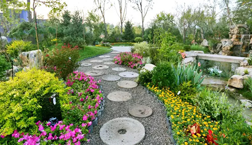 考慮到銀川的干燥氣候,垂直綠化墻植物的保濕成為難題。“浙江園”垂直綠化墻以無紡布為墻體材料,使用保濕性強(qiáng)的基質(zhì),優(yōu)選植物種類,同時搭配滴灌系統(tǒng),保證了綠化墻鮮花擁簇的景象。展園內(nèi)的垂直綠化墻設(shè)計簡潔、曲線優(yōu)美,與以錢塘江文化為主題的背景墻相互映襯,共同展現(xiàn)了新時期浙江園林景觀的不斷發(fā)展與創(chuàng)新。