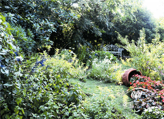 “芳滿庭”位于杭州臨安畫境?青山湖花園中心室外展示區內,桂花、櫸樹、狹葉十大功勞、冬青等植物長勢良好,形成了全光照環境、林緣環境、郁閉環境等多種光照空間。在現有庭院布局基礎上,結合外圍的木香藤架,營造色彩艷麗的花境景觀;內部以藍紫色為主色調,結合原有郁閉環境,營造出人們熱愛生活、向往美好的鄉村私密花園美景。該花境作品榮獲“首屆中國花境競賽”金獎。