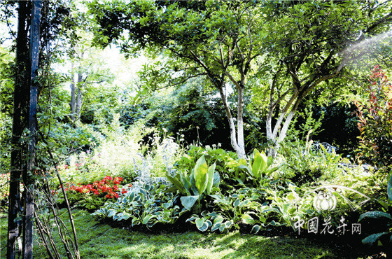 高大的桂花樹為花境提供了極佳的林蔭環境。