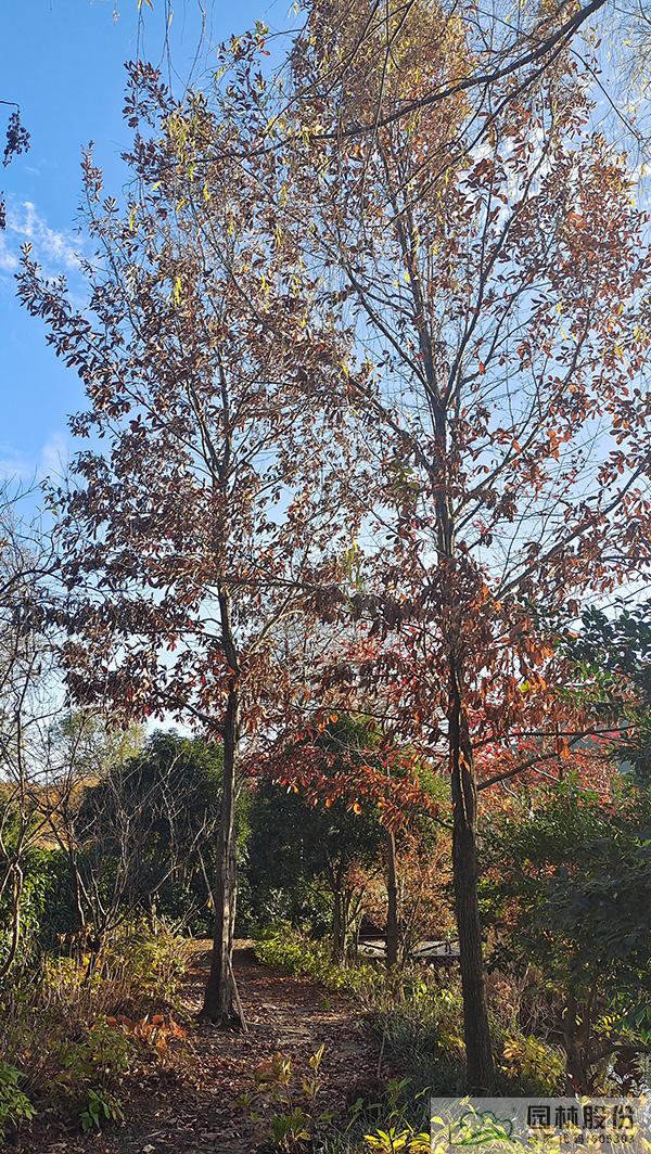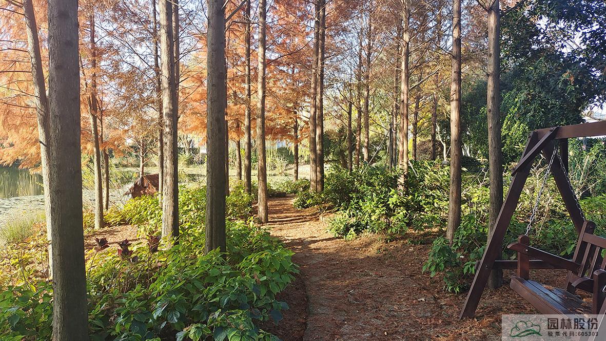 在初冬的日子里,怎能少了水杉、池杉、水松這類落葉針葉樹呢。遠(yuǎn)看,褐色的枝葉、豎向的線條,滿滿的都是初冬的靜謐。如果在林下的園路穿梭,還能看到細(xì)細(xì)密密的落葉灑滿林間,絲絲縷縷的陽光灑落進(jìn)來,好希望時(shí)間一直停留在這一刻。