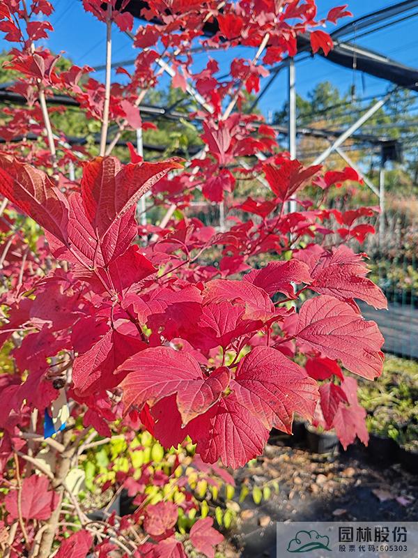 忍冬科莢蒾屬,叢生性落葉灌木,高可達4米。花白色,花期4-5月,果大而紅,觀果期長,可從7月持續(xù)到10月。葉掌狀,通常三裂,秋季一般9-10月葉色開始轉紅,11月達到最佳效果。歐洲莢蒾是莢蒾屬中秋色葉效果較好的一個種類,紅葉期來得比較早,且葉色最為鮮艷。該種病蟲害少,適應性強,耐寒,北方室外能正常生長。生長速度快,適合工程應用或庭院觀賞。